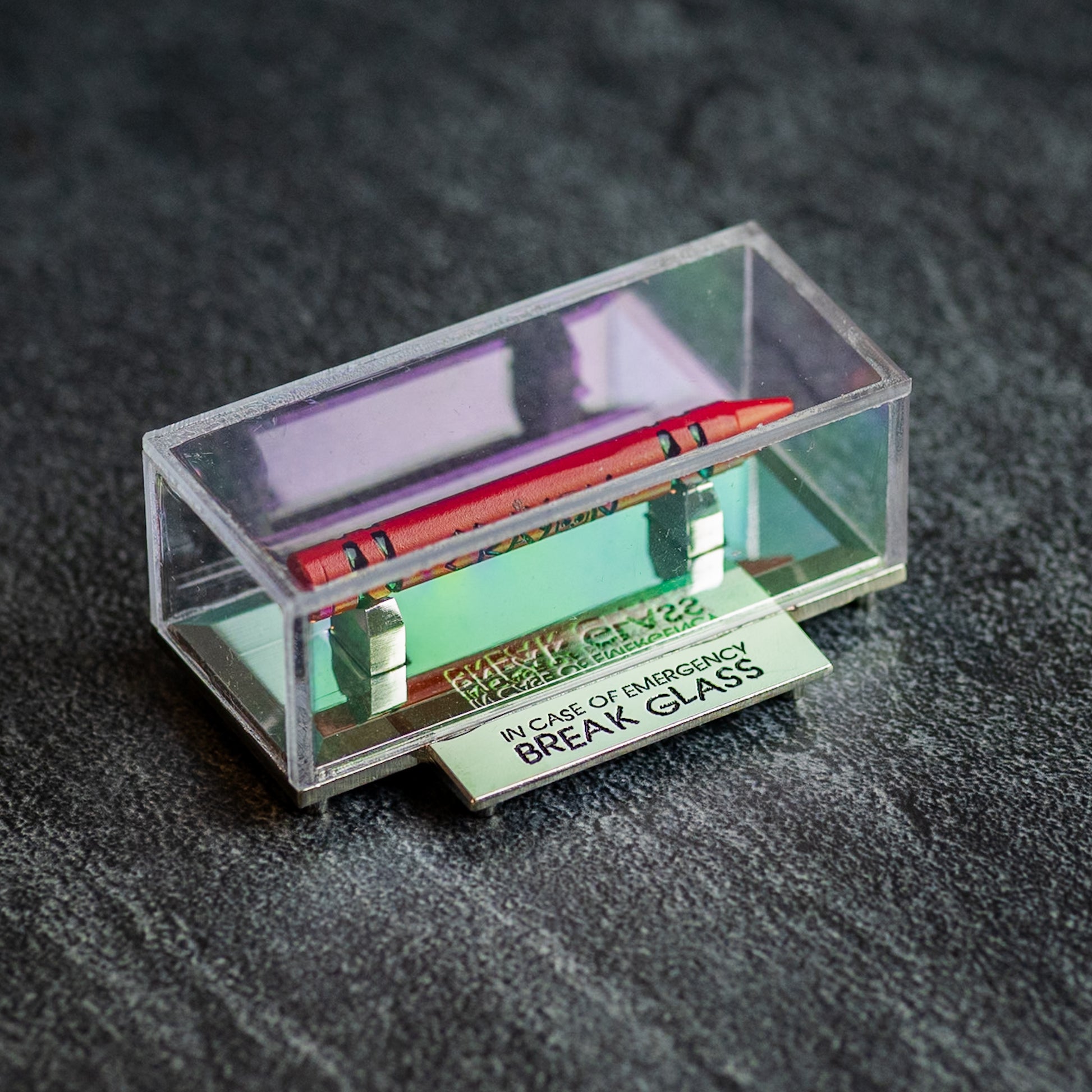 Introducing the ultimate piece of humor and pride: the "Break Glass" Crayon. Built for the warriors who know that when the going gets tough, the tough break glass and grab a snack.