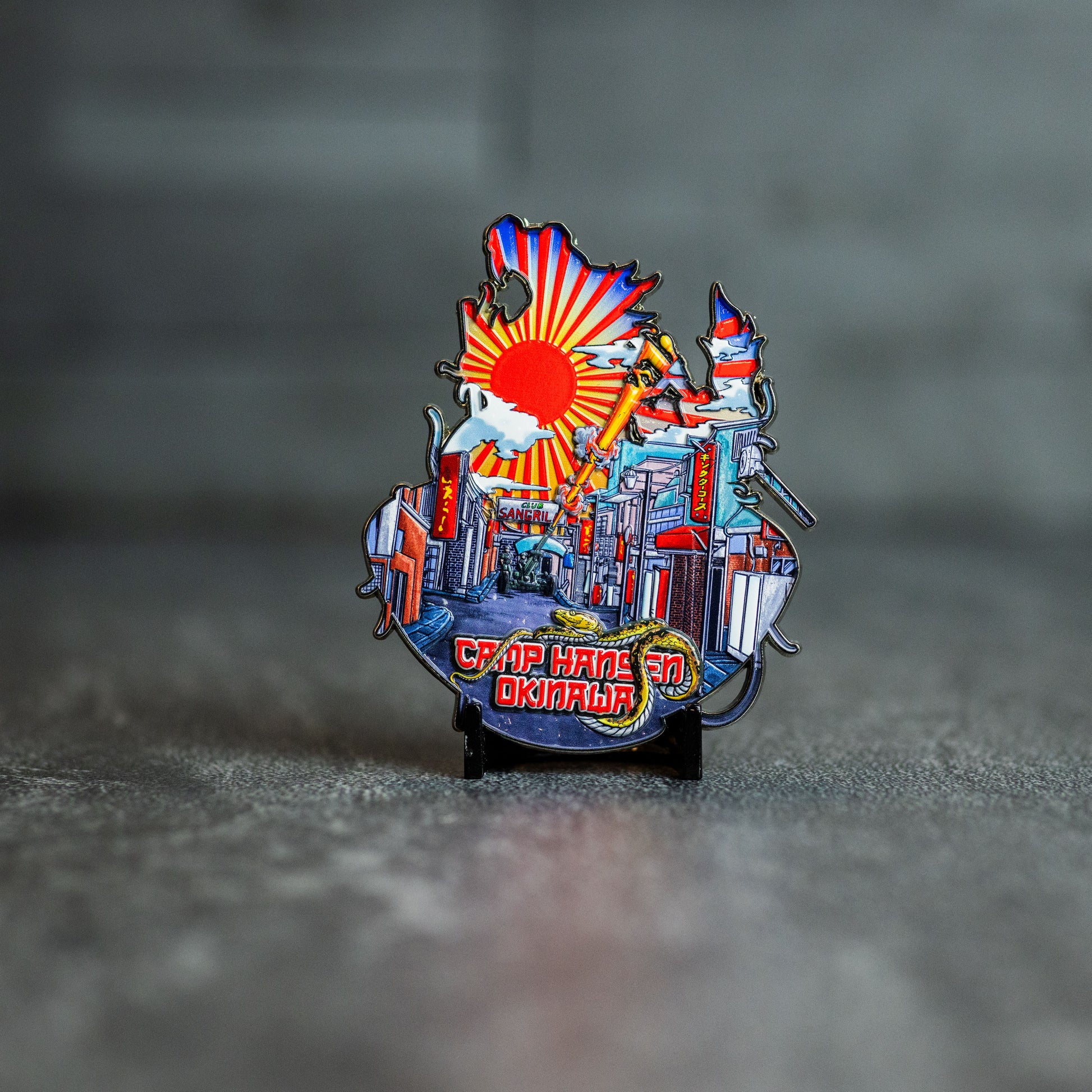 This Dragon Boat Ramen challenge coin is a tribute to the fierce energy of Okinawa’s dragon boat festivals and the unshakable spirit of Camp Hansen. Blending cultural pride with the universal comfort of ramen, it celebrates unity, endurance, and the simple joys found after the grind.