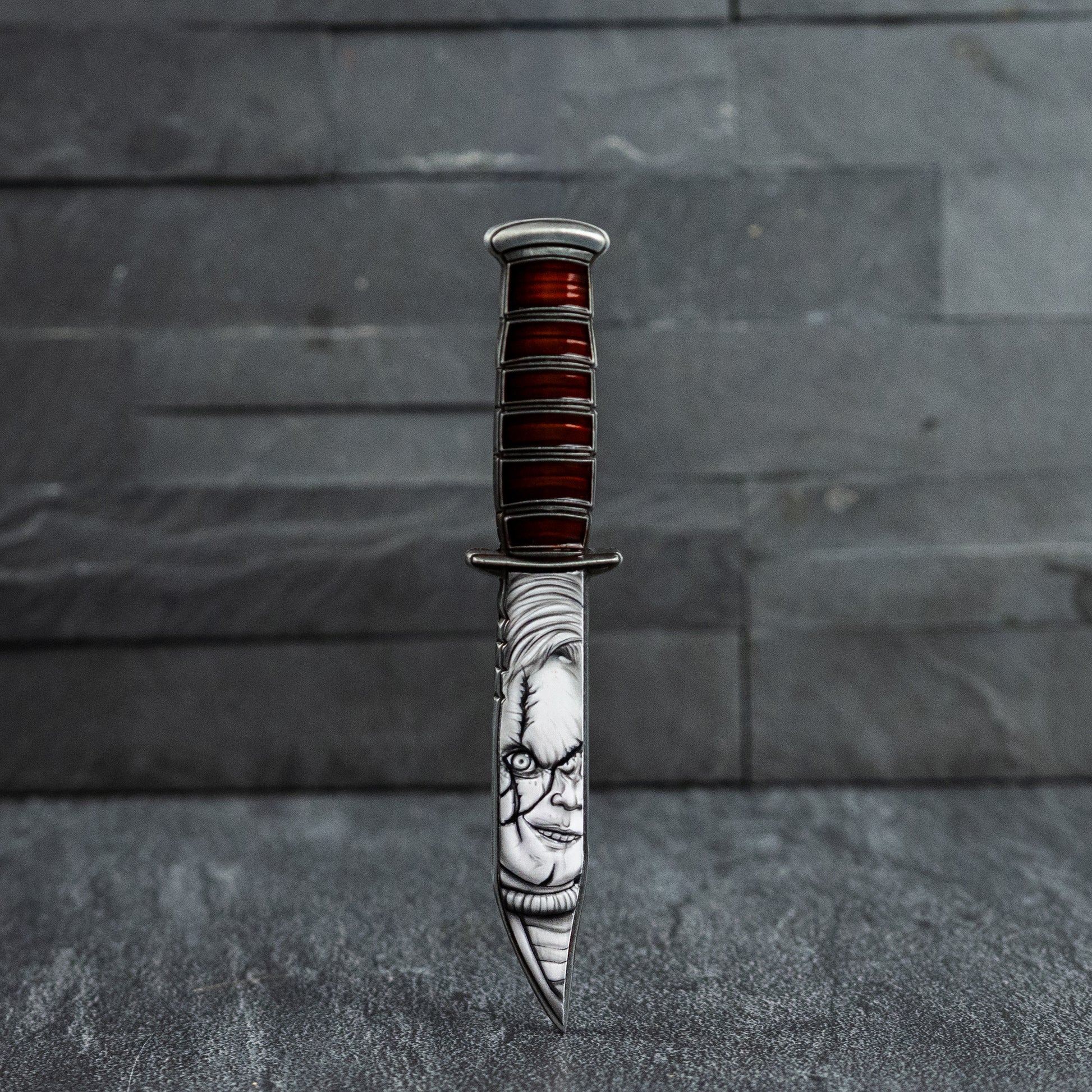 From the depths of your nightmares comes a blade forged in madness — where playtime meets pure terror. K-Bar: Faces of Fear brings multiple icons of horror face-to-face on a single, sinister edge. This isn’t just a coin — it’s a warning.